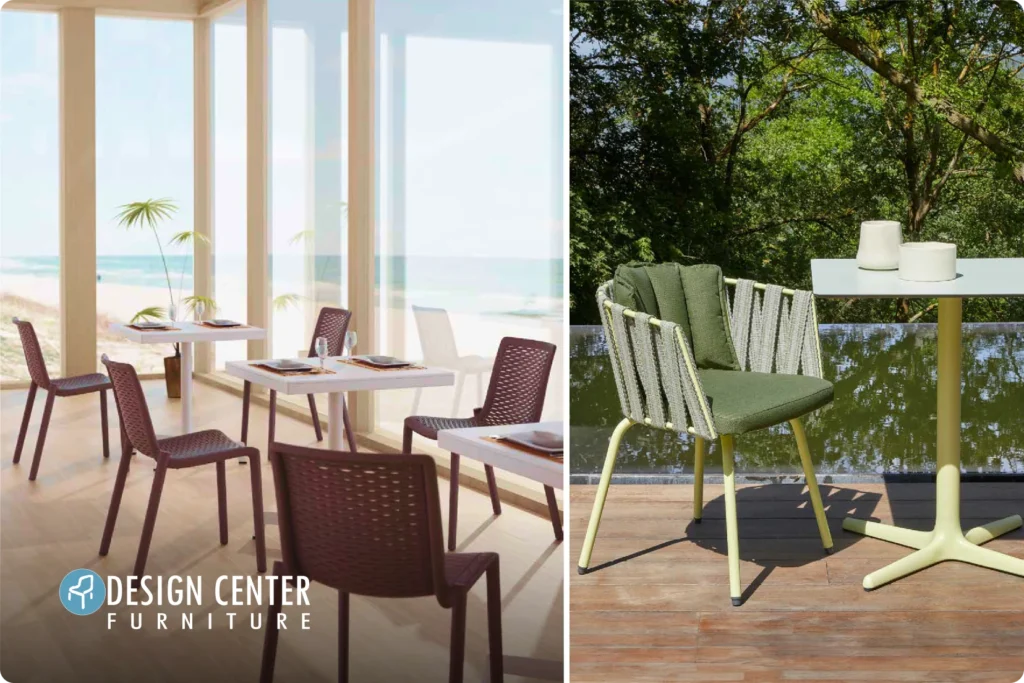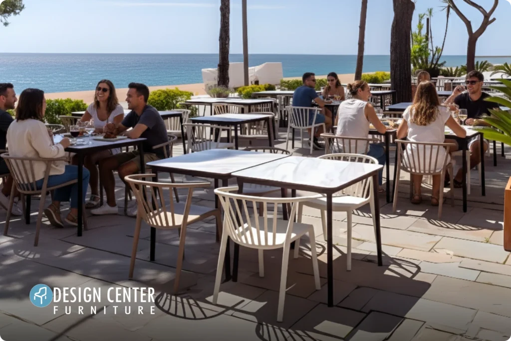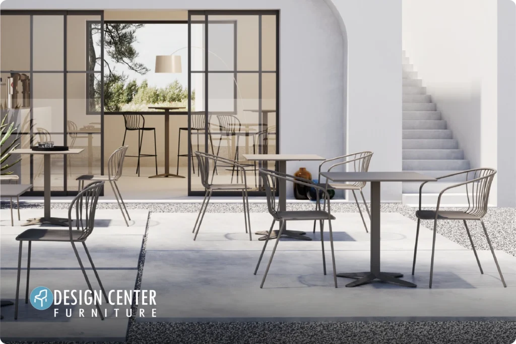 Un mueble bien diseñado no solo debe verse bien. Debe ser ligero para moverlo con agilidad durante el servicio, permitir una limpieza eficiente debajo y entre cada pieza, estar tapizado con materiales duraderos que resistan tanto el paso del tiempo como el ritmo del uso diario, y mantenerse cómodo y funcional incluso en espacios exteriores expuestos a calor, humedad o uso intensivo.